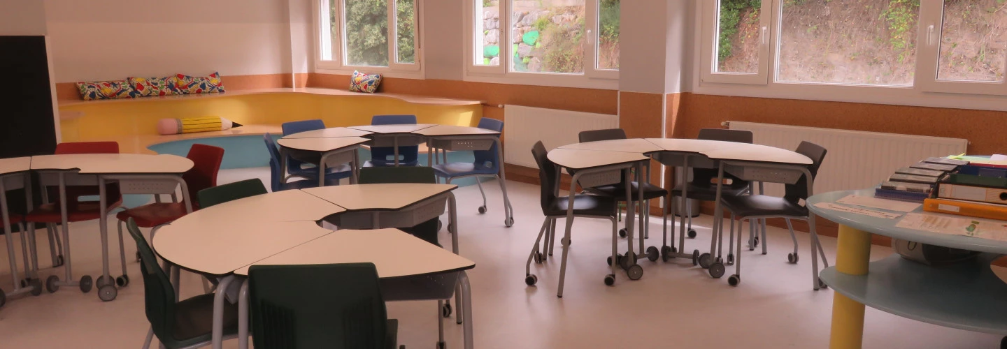 Las aulas cuenta con espacios amplios que el resto de clases, aprovechado con mesas redondas ocupadas por cinco personas de forma que puedan verse más fácilmente. Constan de pizarras, tanto de tiza como de rotulador, así como digitales. Algunas de ellas cuentan con un innovador espacio ocupado por una tribuna en la que se celebran asambleas, pequeñas actuaciones y debates sobre temas de grupo y del curso.