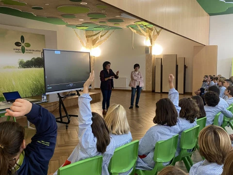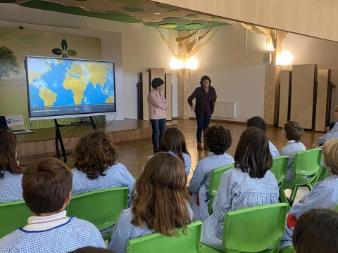 CONFERENCIAS CMP. Charo Garitacelaya, de la asociación "Cantabria por el Sáhara", ha estado con los alumnos de 5º de primaria para compartir su experiencia como voluntaria en los campamentos de refugiados. Esta visión permite a los alumnos comprender la importancia de la ayuda humanitaria en el mundo.