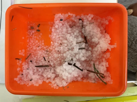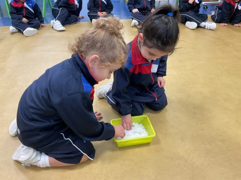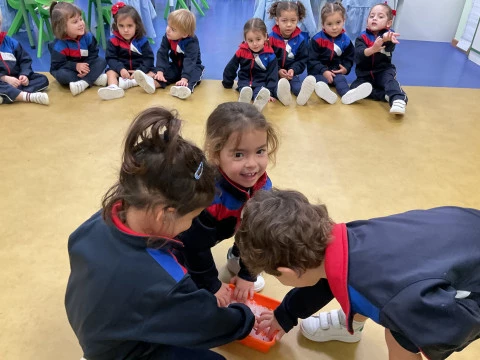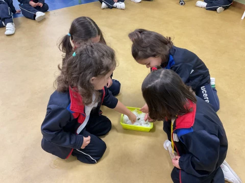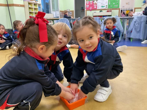 INFANTIL. Una inesperada granizada nos ha dado el pie perfecto para una sesión de aprendizaje experiencial en 1° de Infantil. Hemos observado el fenómeno desde la ventana y, después, hemos traído los pequeños granizos al interior. Tocar la textura fría, ver su forma... y la parte más mágica: descubrir que el granizo se derrite y se convierte en agua. Una actividad sensorial que les ha permitido explorar la naturaleza como recurso didáctico