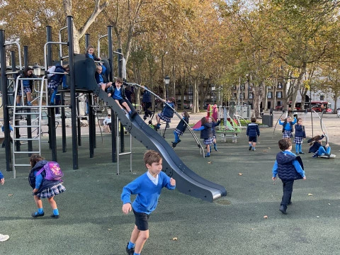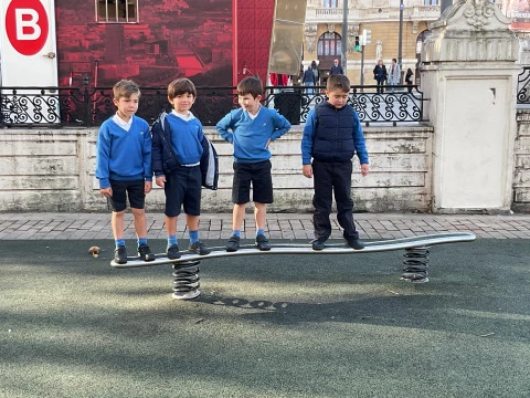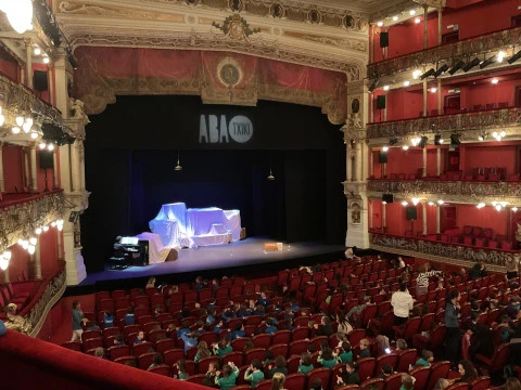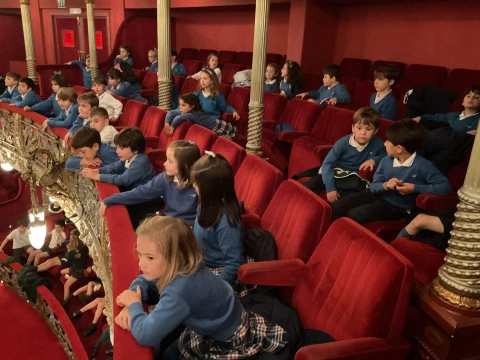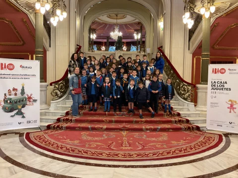 Los alumnos y alumnas de 1º de Primaria han disfrutado hoy del estupendo espectáculo “La caja de los juguetes”, organizado por ABAO Txiki, en el Teatro Arriaga. Una magnífica mañana en la que, una vez más, han recordado la importancia de jugar con las palabras, construyendo historias llenas de música, color e imaginación.