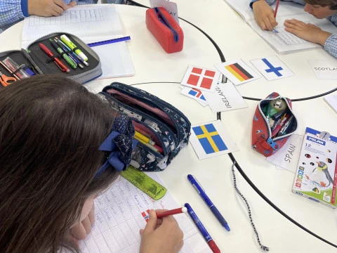 PBLL. Los alumnos de 5° de primaria han llevado a cabo un proyecto sobre ‘The English Way’, enmarcado en su realidad ‘El camino De Santiago’. Han aprendido acerca de la historia de esta famosa ruta de peregrinación, así como los gentilicios y banderas de Europa. Como producto final, están realizando en grupos cooperativos un tríptico con información importante sobre cada una de las etapas del camino inglés.