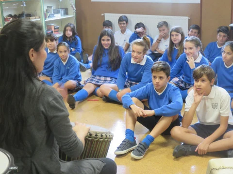 La percusionista Nerea Quincoces ha impartido a los alumnos de 1° de ESO un taller de percusión étnica con instrumentos tradicionales de África, Cuba, Oriente Medio y distintas regiones españolas.
