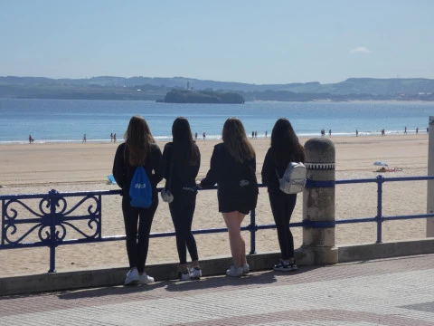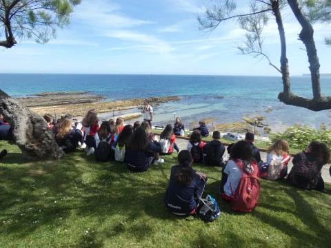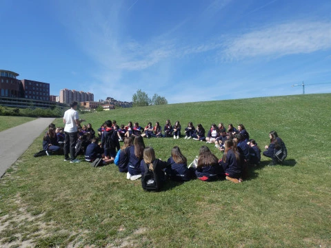 UBPI ESO. Los alumnos de 2º de ESO han pasado la mañana de hoy en Santander. Tras visitar Escenario Santander, han realizado un itinerario a pie desde el Parque de Las Llamas hasta el entorno de la Península de la Magdalena, comprobando el cambio en la frecuencia cardiaca por el esfuerzo realizado.