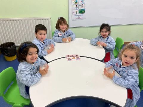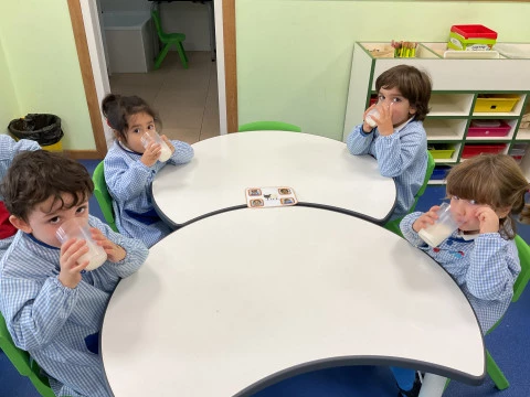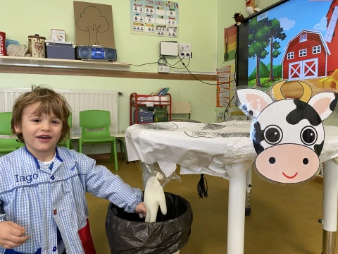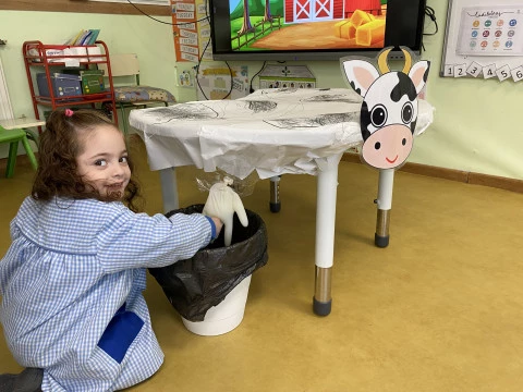 SITUACIÓN DE APRENDIZAJE. Nuestros alumnos de 1º de Educación Infantil siguen sumergidos de lleno en el fascinante mundo de la granja. Hoy, la actividad estrella ha sido... ¡Ordeñar una vaca! Hemos puesto a prueba nuestras habilidades con una vaca muy especial y, tras el esfuerzo, ¡hemos disfrutado de una deliciosa recompensa: un buen vaso de leche! Con estas experiencias, no solo jugamos, sino que aprendemos de dónde vienen los alimentos y cómo es el trabajo en el campo. ¡Aprendizaje divertido y sensorial garantizado!