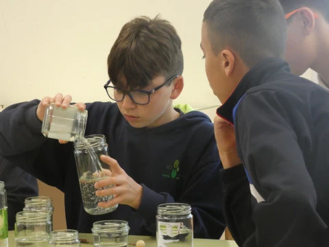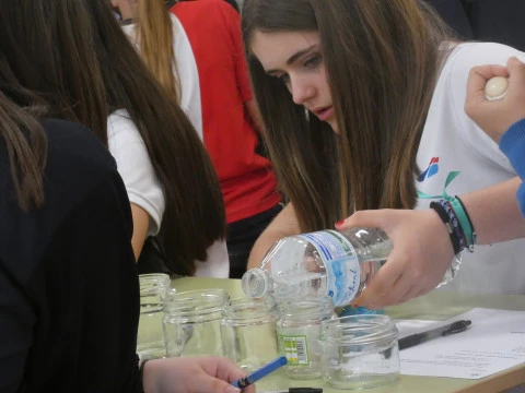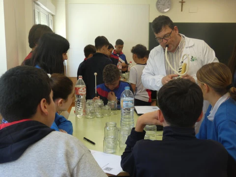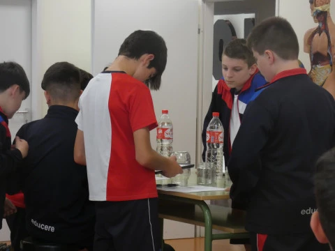 Los alumnos de 1º han comenzado el proyecto "Música y matemáticas: una combinación perfecta" dentro del ámbito de Matemáticas y Música. Han realizado una actividad inicial en la que han construido un xilófono con pequeños botes de vidrio llenos de agua reproduciendo la canción de Radio GaGa del conocido grupo Queen.