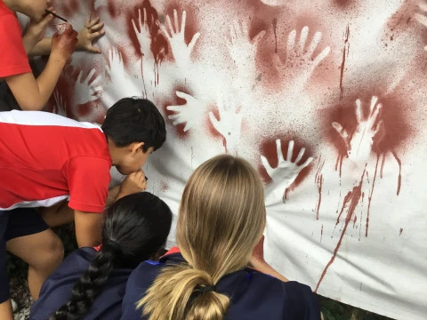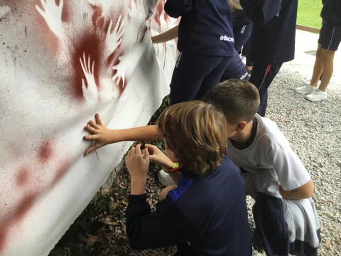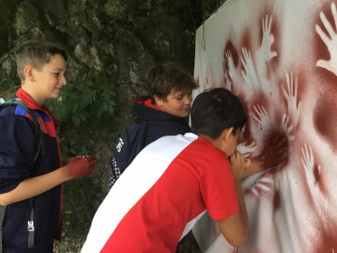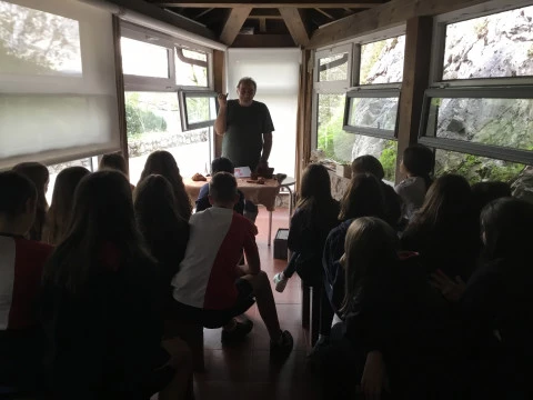 UBPI. Los alumnos de 1º de ESO, dentro de la realidad dedicada a El origen, han visitado hoy la cueva de El Castillo, en Puente Viesgo, y el conjunto de arte rupestre paleolítico que alberga en su interior. Además, han realizado manos en negativo empleando la antigua técnica de la aerografía.