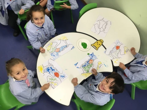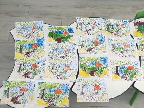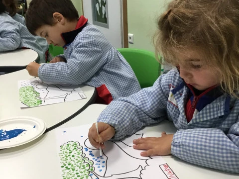 Los niños de 2º de Infantil avanzan en la UBPI de Van Gogh. En la última semana descubrieron el "puntillismo", al igual que Vincent lo conoció en París. Los resultados de los trabajos utilizando esta técnica han sido fantásticos.